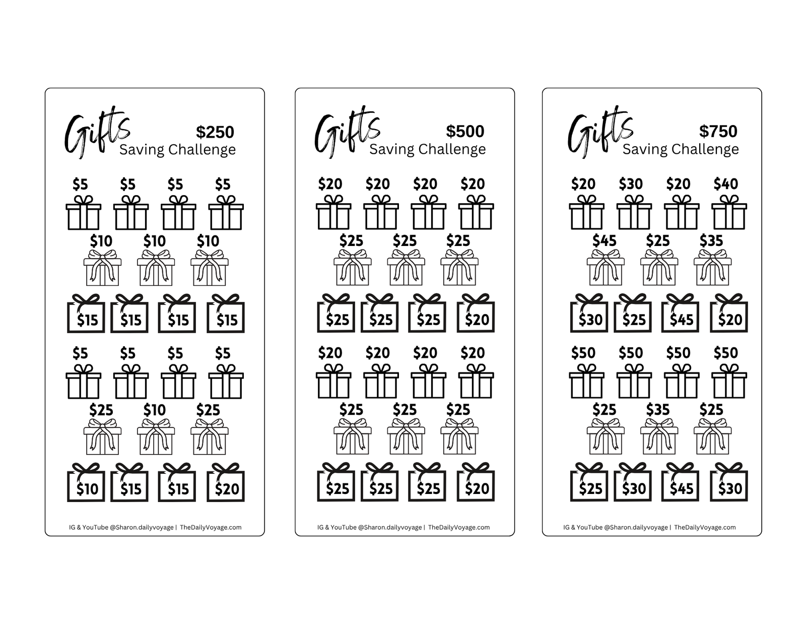 Gift Funds Saving Challenge Trackers – Digital Download
